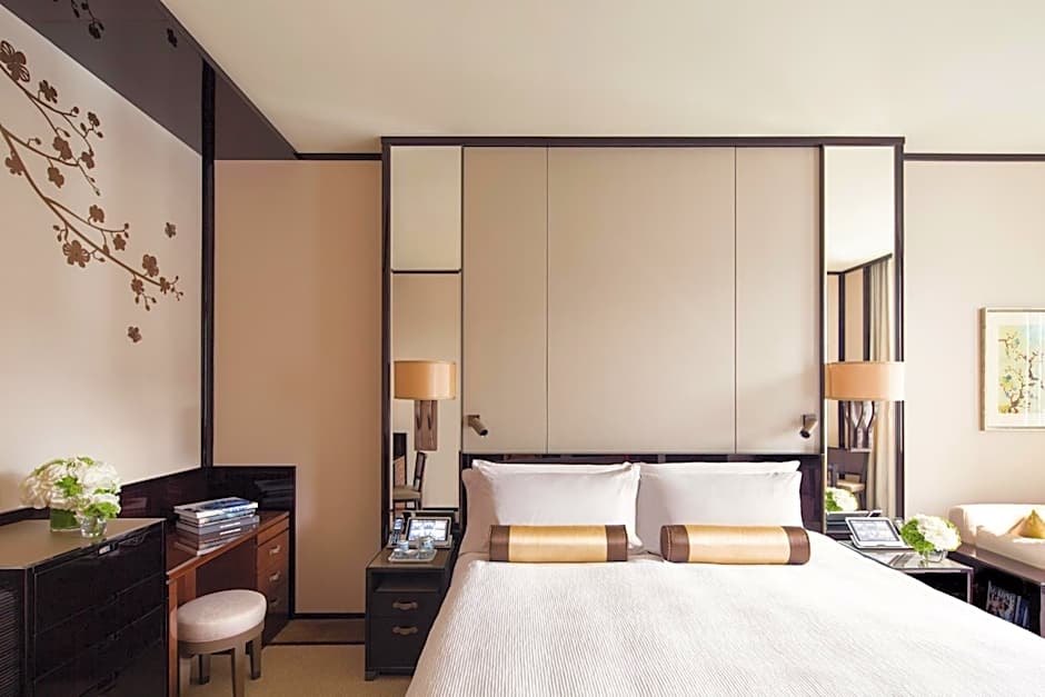 Offering Victoria Harbor views, this suite offers a spacious dining area, workstation and spacious room to relax. It includes a plush, L-shaped sofa by the feature fireplace and Blu-Ray LED TV. The bedroom features a telescope, twin armchairs and fully-equipped audio visual center and mini-bar. A spacious dressing area with a walk-in closet marks the entrance to the marble-clad bathroom, featuring a corner bathtub with views of the city.
